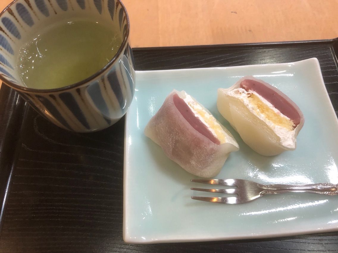 季節によってかわる餡と、生クリームとカステラが求肥につつまれて絶妙なハーモニー!